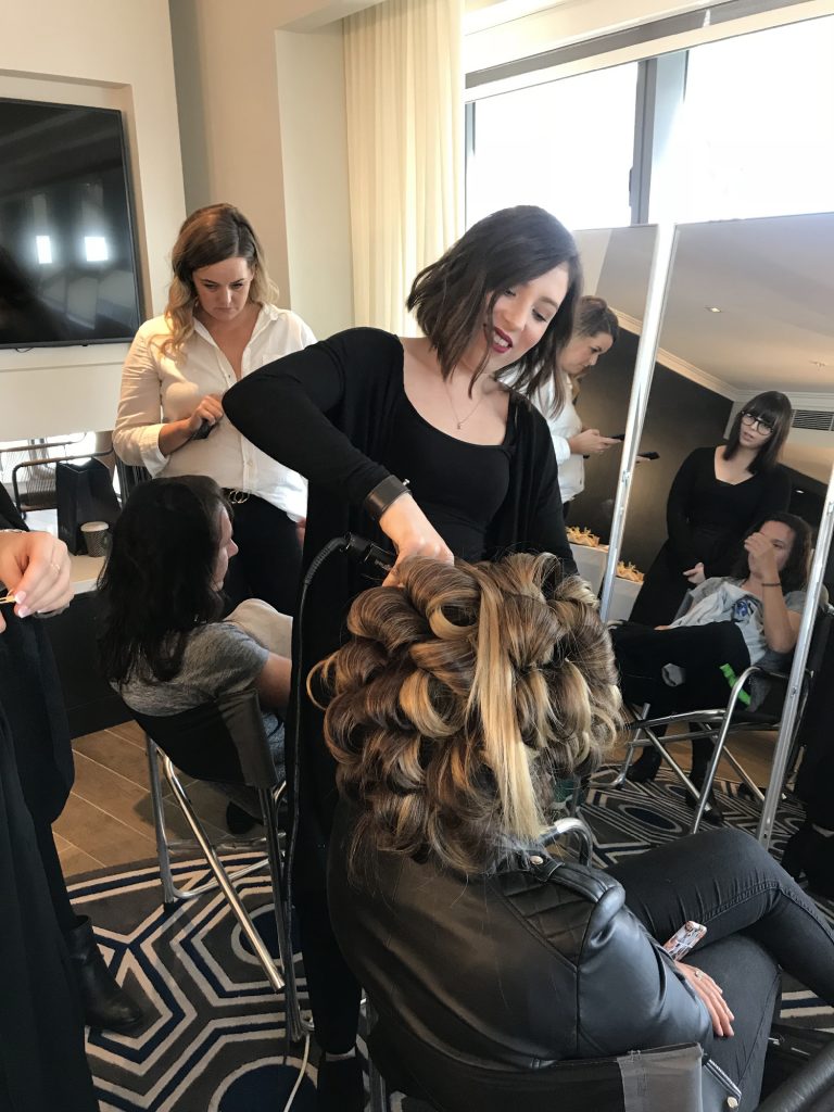 The team from Hair by Phd were thrilled to once again be invited to create beautiful hair for the winners and attendees of the Dolan Warren Awards. Sarah Merzi, Cassandra Kavalieros, Jessica Pierovic and Monique Kalefeh from Hair by Phd in Parramatta were our representatives at the Schwarzkopf Pro hair styling suite, alongside the team from Kokum Hair Skin and Body from Newcastle.